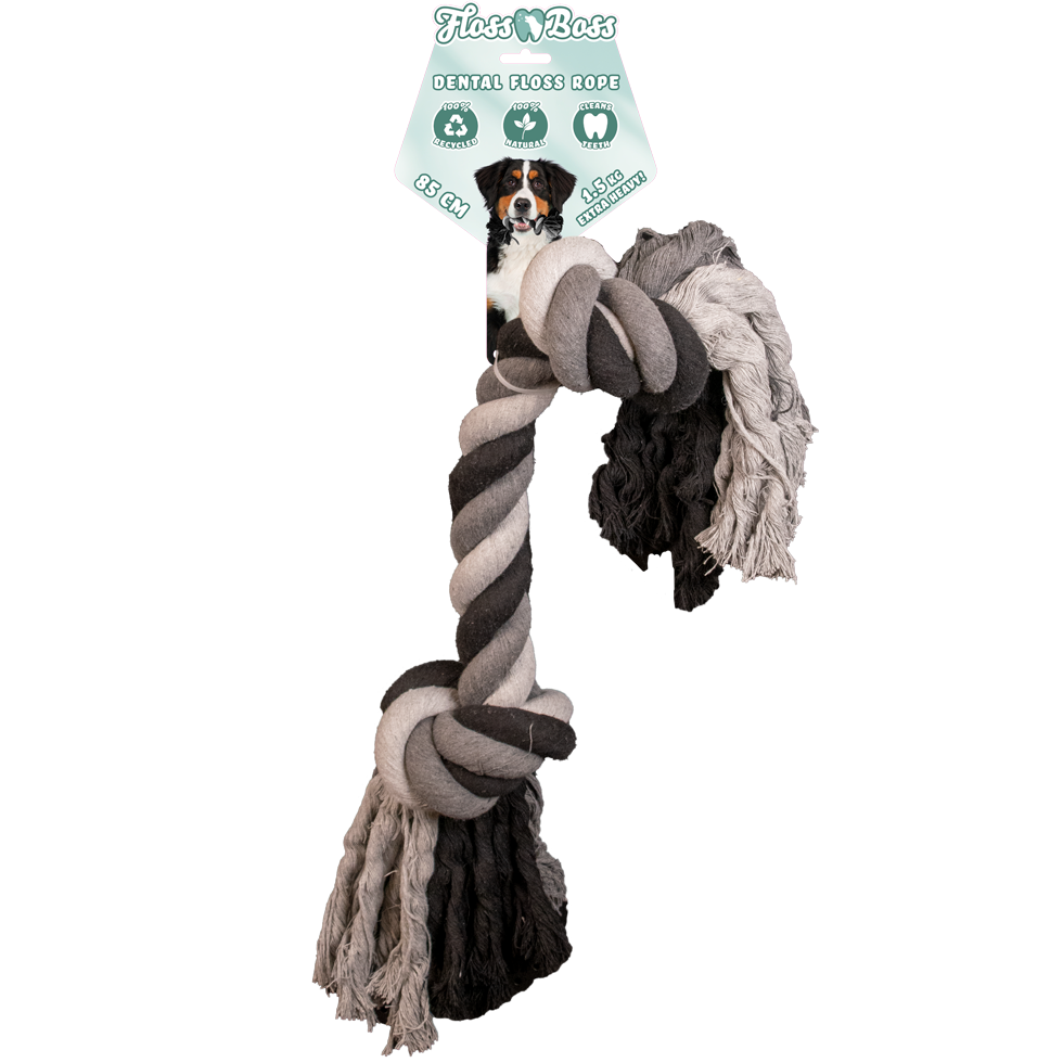 Diese tolle Zahnseil ist aus 100% Baumwolle hergestellt. Es ist sicher, natürlich und langlebig und eignet sich perfekt für Apportier- und Zugspiele. Während des Spiels hilft das Zahnseil, die Zähne des Hundes zu reinigen. Außerdem ist dieses Floss Boss Zahnseil dichter geflochten und viel stärker als normale Zahnseide. Das liegt daran, dass nur ganze Fäden verwendet wurden.- 100% Baumwolle