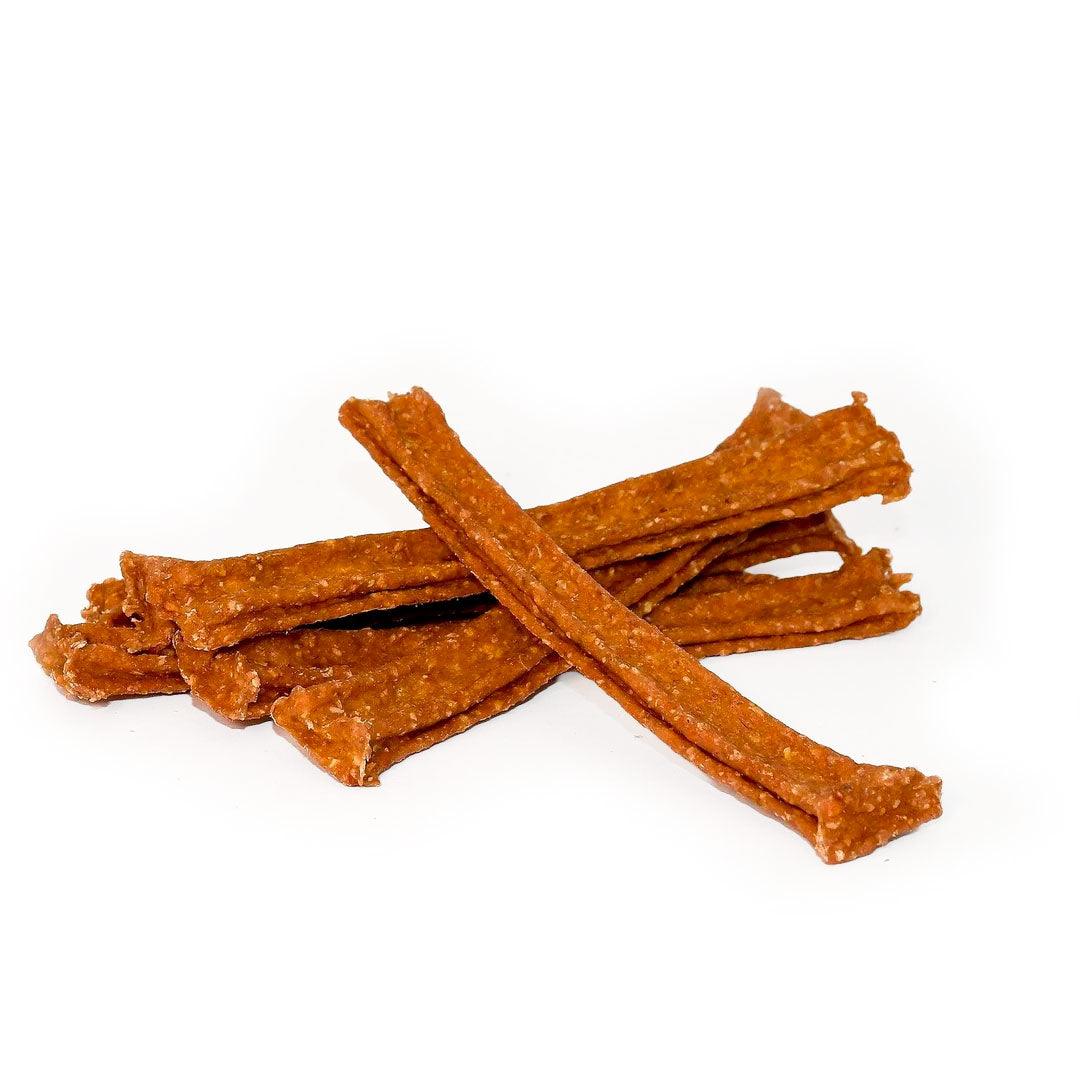 Das sorgfältig ausgewählte Hähnchenfleisch und die Naturrinderhaut werden lokal bezogen und sind zu 100% rückverfolgbar. Durch unseren schonenden Herstellungsprozess bleiben die in den Rohstoffen enthaltenen Nährstoffe erhalten und helfen Deinem Hund lange gesund und vital zu bleiben..